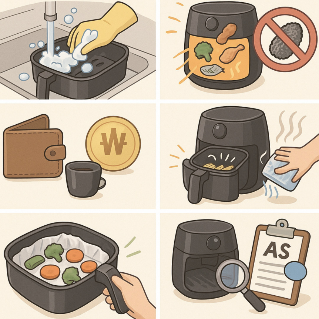 Q1. 에어프라이어 처음 사용할 때 세척해야 하나요?