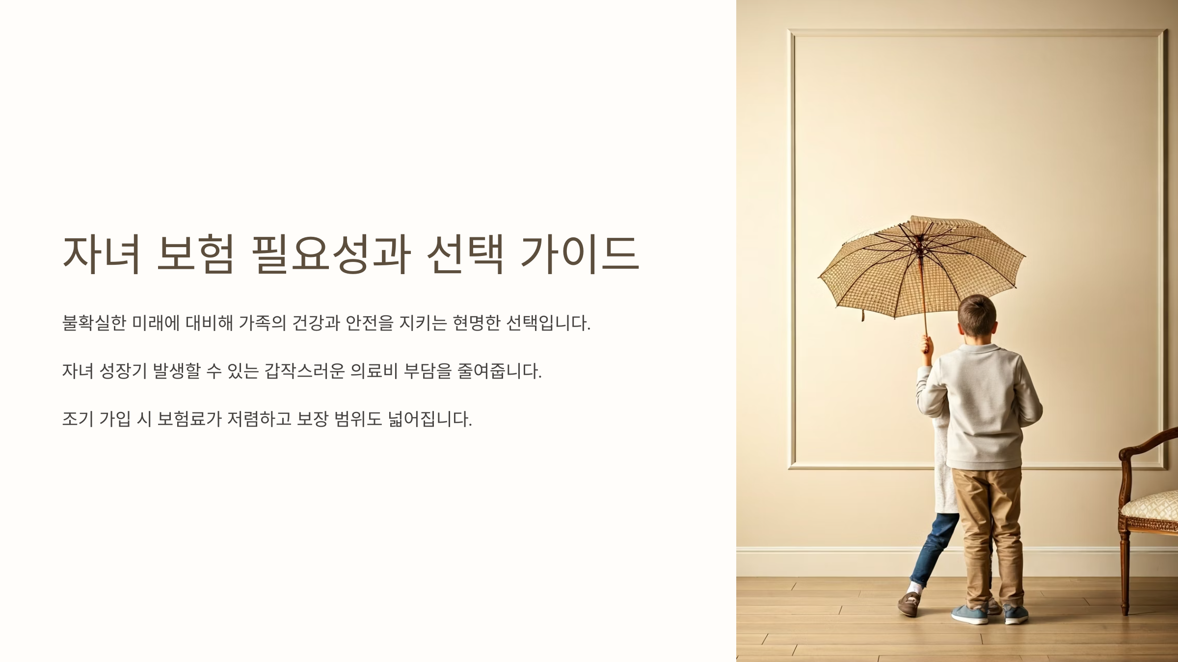 이제부터 자녀 보험을 왜 들어야 하는지, 어떤 종류가 있고 연령별로 어떤 상품이 적절한지, 그리고 실제 가입 시 도움이 되는 팁과 사례까지 하나하나 살펴볼게요. 제가 생각했을 때는 보험이 단순히 위험을 보장하는 도구를 넘어서 자녀의 인생 전체를 설계하는 첫걸음 같아요. 💡
