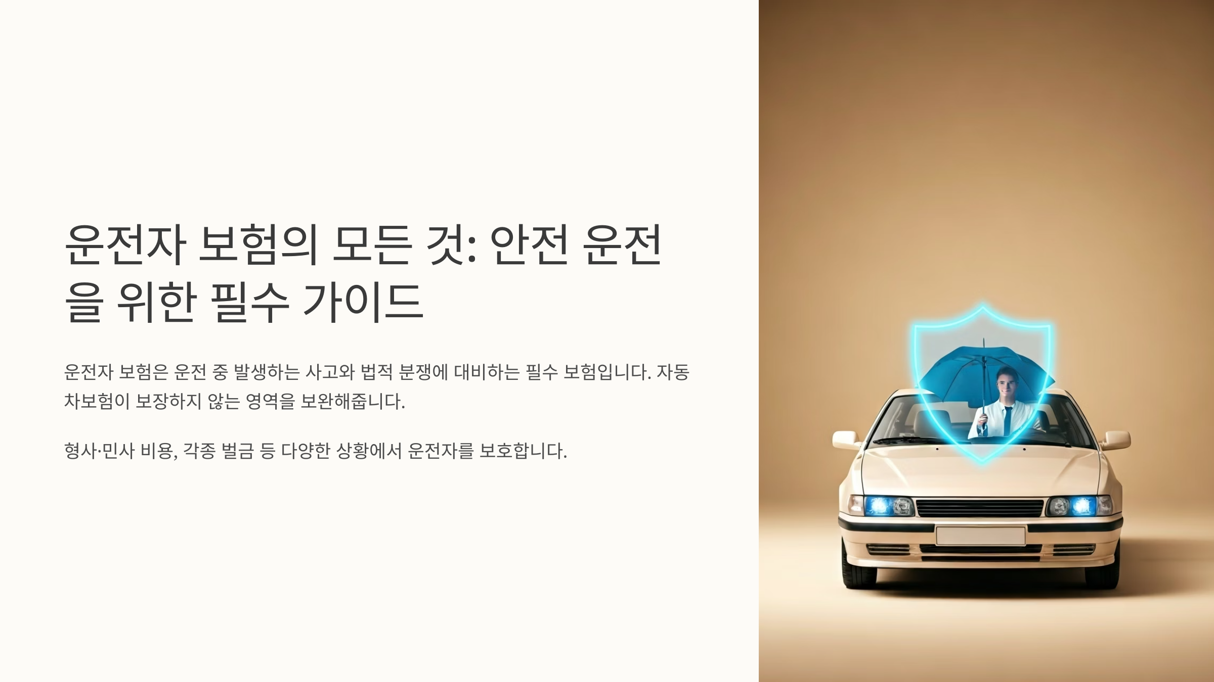 이제부터는 왜 운전자 보험이 꼭 필요한지, 그리고 어떤 보장이 있는지 본격적으로 알아볼게요! 🚗